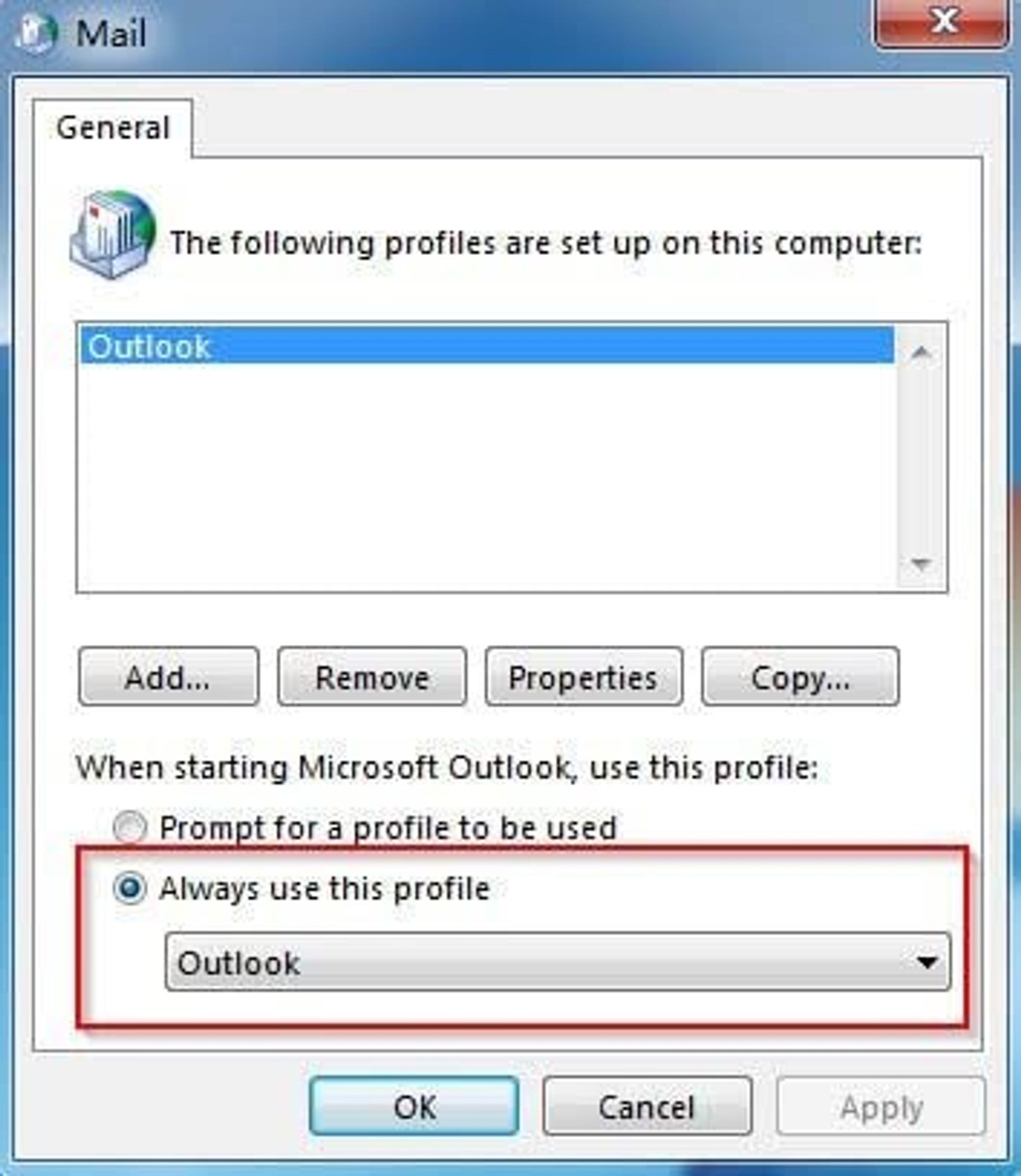 If the cause of this error to your Outlook is an email that has been damaged, then you need to create a new profile. To create a new profile on Outlook, do the following: