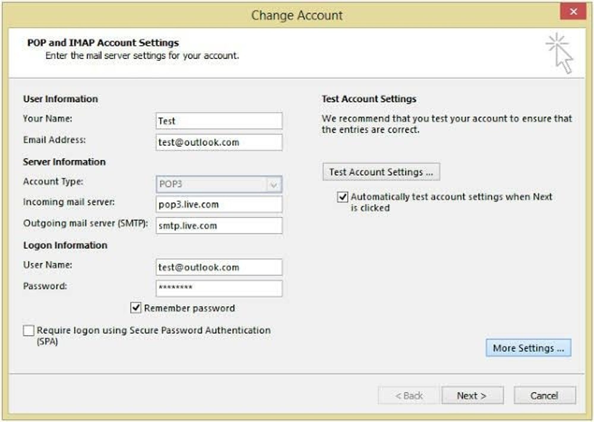 The following tips will help you resolve the Outlook POP server timeout error 0x8004210a: